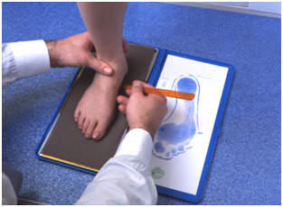 足と靴の専門のカウンセラー(義肢装具士)により、外反母趾や扁平足障害など、足のトラブルを診断し、足の採寸を行い、おひとりおひとりの症状に合わせた足底板(インソール)や矯正靴の処方を行います。